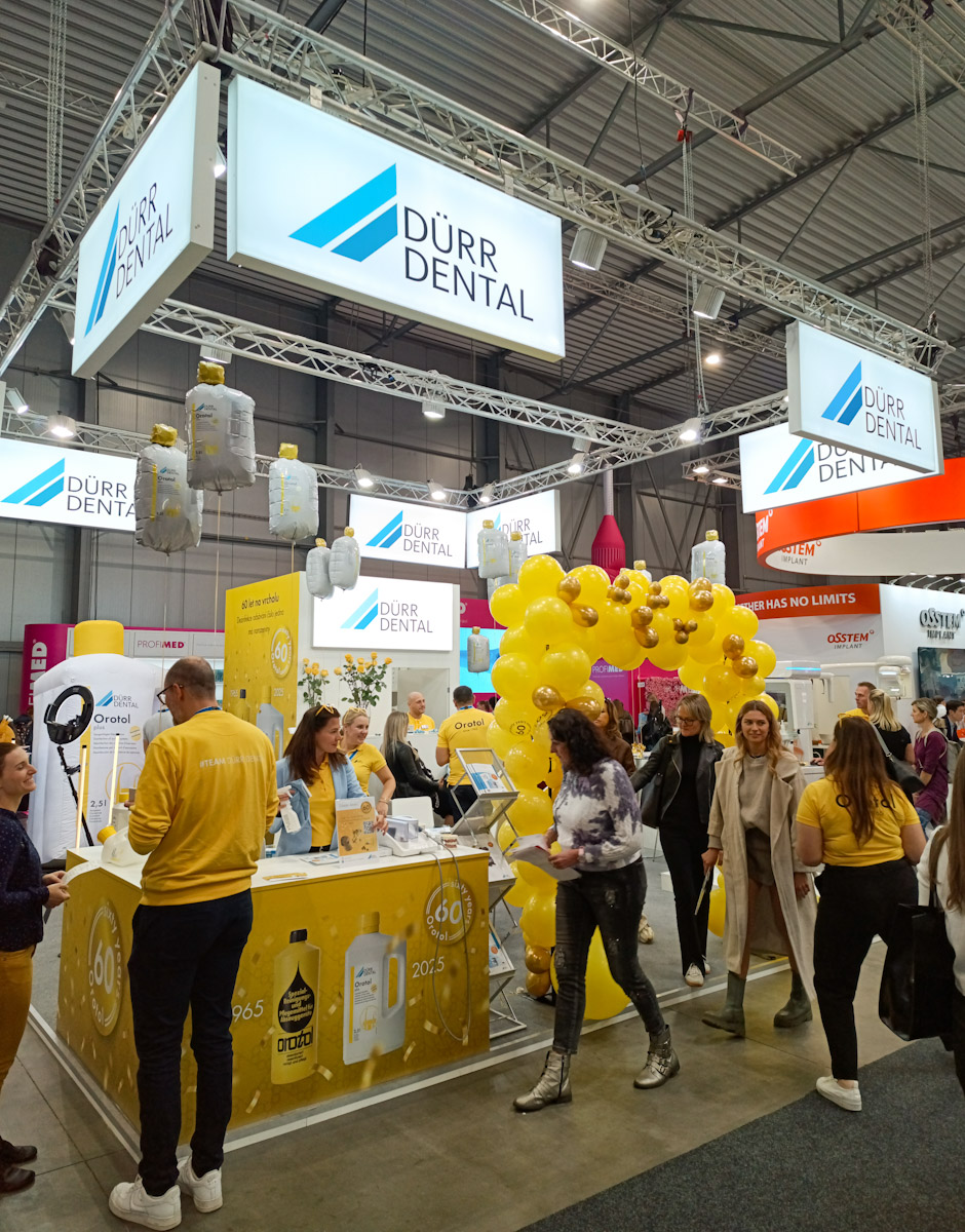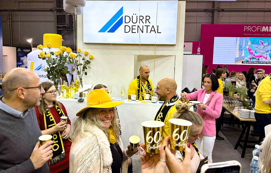 Na stánku 2A 11 firma Dürr Dental účastníky zvala na oslavu 60 let dezinfekční řady přípravku Orotol na dentálním trhu.