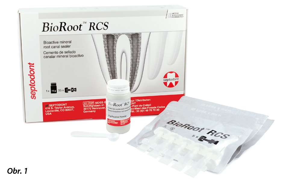 Představení hydraulických materiálů na bázi křemičitanu vápenatého k použití při pečetění kořenových kanálků bylo založeno na vývoji původního složení MTA (mineral trioxide aggregate). První odborný článek informoval o použití MTA coby pečetidla kořenových kanálků ve spojení s gutaperčou.1 Použití MTA coby pečetidla vedlo k tvorbě mineralizovaných tkání, a tak vznikla první studie, která se zabývala procesem biomineralizace a reakcí tkání na MTA a jeho schopnost uvolňování vápníku.2 Použití MTA coby pečetidla vedlo apikálně k větší míře prosakování než při obturacích gutaperčou.3 Mechanismus působení MTA a jeho mechanismy hydratace byly zkoumány později4–6 a následoval vývoj komerčních pečetidel kořenových kanálků. První na trhu byla vyvinuta v roce 2008 společnostmi Egeo a Angelus.7 Ve stejné době vyšel také článek o pečetidle ProRoot Endo vyvinutém společností Dentsply,8 ale toto pečetidlo bylo na trh uvedeno teprve nedávno. Výběr v současné době klinicky dostupných pečetidel je uveden v tabulce 1. Mezi těmito pečetidly je i BioRoot™ RCS vyvinuté společností Septodont. Tento článek je věnován složení a vlastnostem tohoto pečetidla.