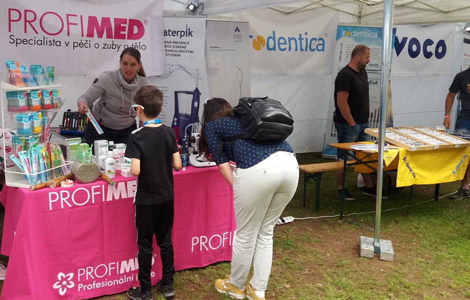 Stejně působivý byl i prostor pro vystavovatele, který nejvíce ožil během sobotní Dentální olympiády. Každý z vystavovatelů měl pro účastníky připravený „olympijský“ úkol – téma bylo libovolné a hlavně zábavné.