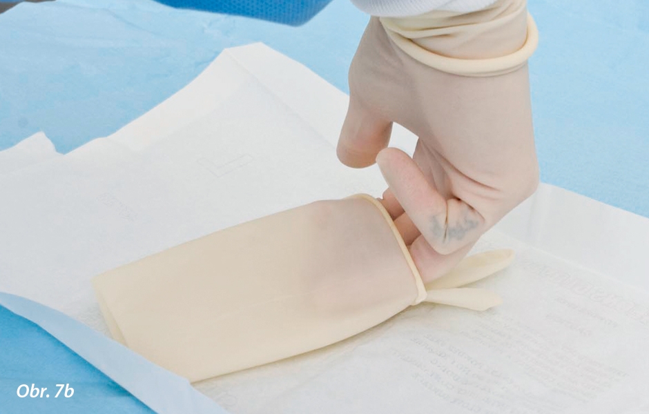 Při navlékání sterilních rukavic je nutno dotýkat se holou rukou jen jejich vnitřního povrchu – rukou v rukavici pak jen jejich vnějšího povrchu.