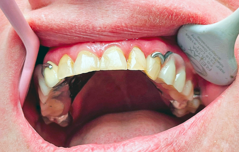Obr. 8d: Dokončená částečná snímatelná náhrada s CrCo 3D tištěným skeletem.