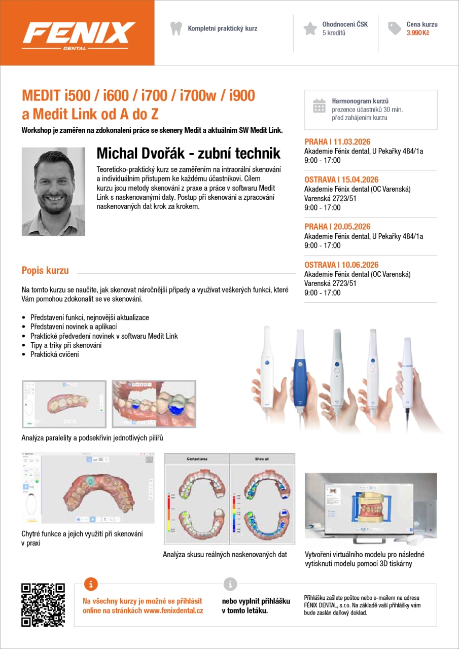 St 11. 3. 2026 | 9:00 – 17:00 hod. | Akademie Fénix dental, U Pekařky 484/1a, PrahaMichal Dvořák – zubní technik
