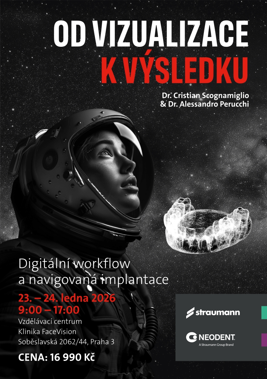 Intenzivní dvoudenní kurz poskytuje prakticky orientované osvojení integrovaného 3D plánování a navigované chirurgie. Účastníci se naučí pracovat se SmileCloud, coDiagnostiX a Neodent EasyGuide — od sběru dat, přes digitální návrh a verifikaci chirurgické šablony až po navigovanou implantaci a okamžitou temporizaci. Kurz kombinuje teoretickou část s hands-on cvičeními na pokročilých modelech, s cílem zvýšit predikovatelnost výsledků, bezpečnost zákroků a efektivitu komunikace mezi klinikou, laboratoří a pacientem.