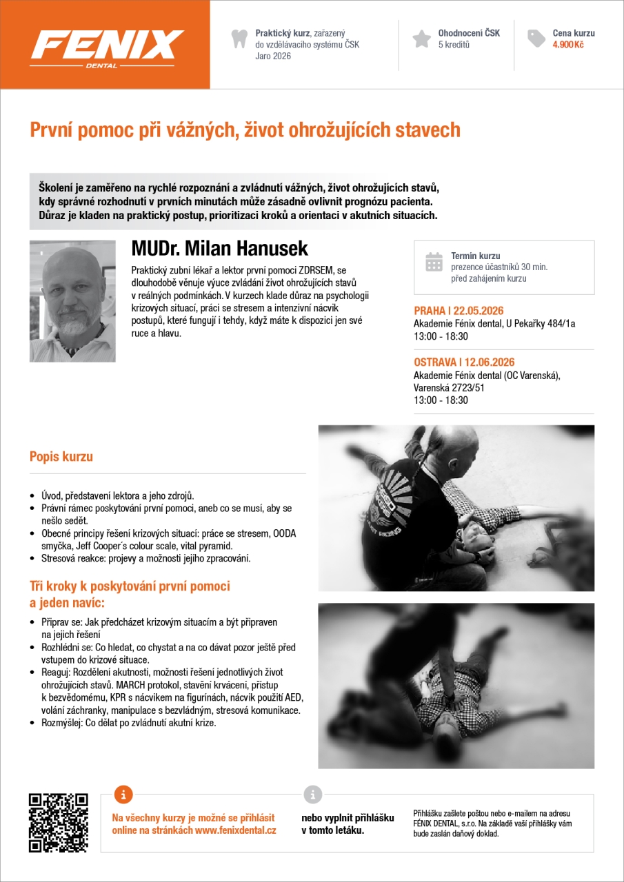 Pá 22. 5. 2026 | 13.00 – 18.30 hod. | Akademie Fénix dental, U Pekařky 484/1a, Praha