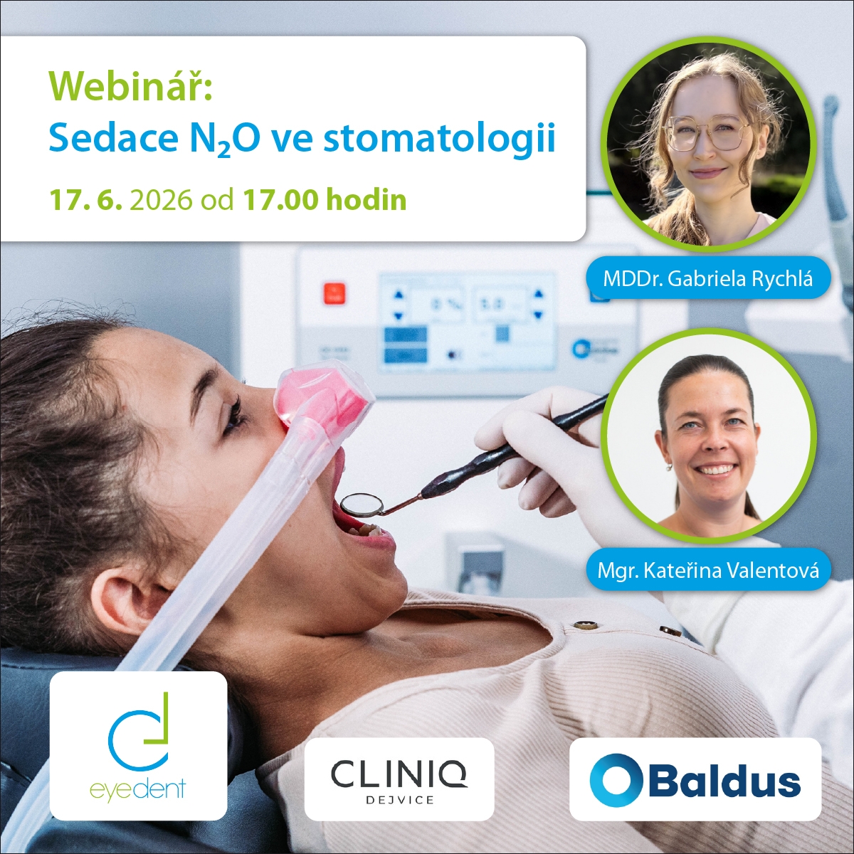 Mgr. Kateřina Valentová je absolventkou oboru Právo a právní věda Univerzity Palackého v Olomouci. Již 9. rokem působí ve společnosti eyedent s.r.o., která se zabývá distribucí dentálního materiálu a přístrojů do stomatologie. Specializuje se na přístroj na sedaci N₂O od německé společnosti Baldus Sedation. Vede certifikované kurzy k tématu sedace N₂O ve stomatologii a zaškolení na klinikách.